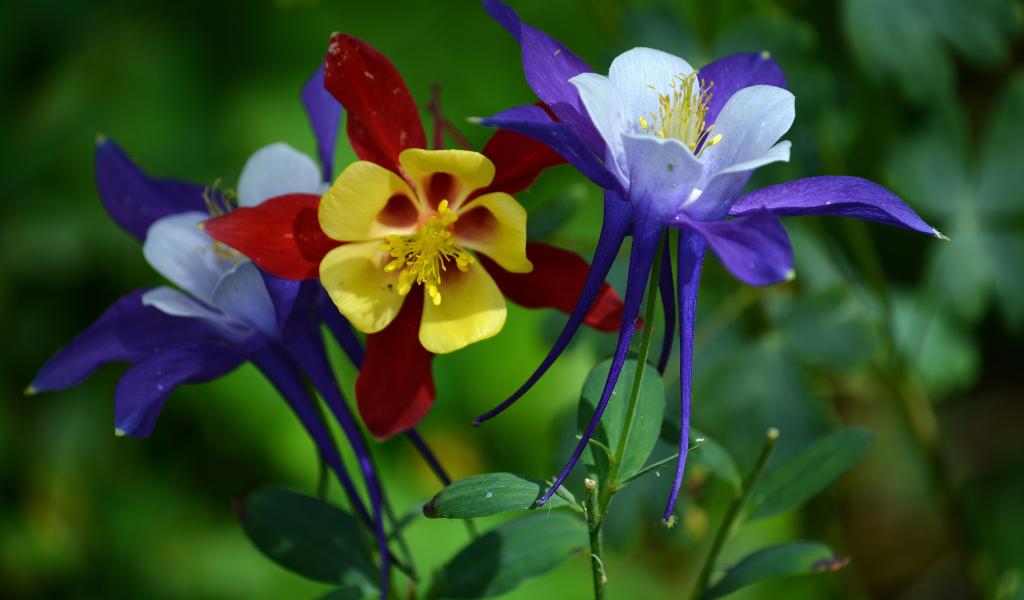 Обои Разноцветные цветы водосбора на клумбе