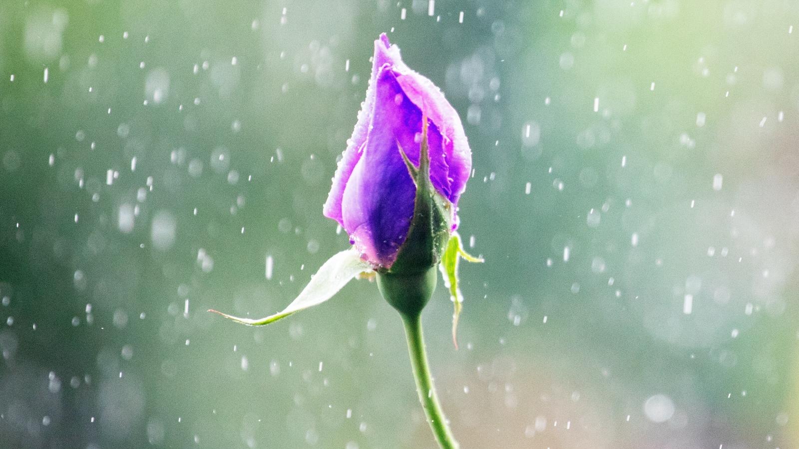 Обои Бутон красивой розы под дождем