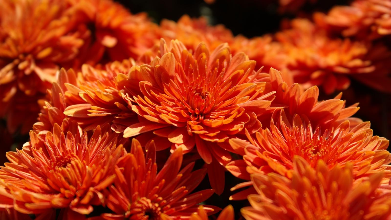 Обои Оранжевые цветы хризантемы крупным планом