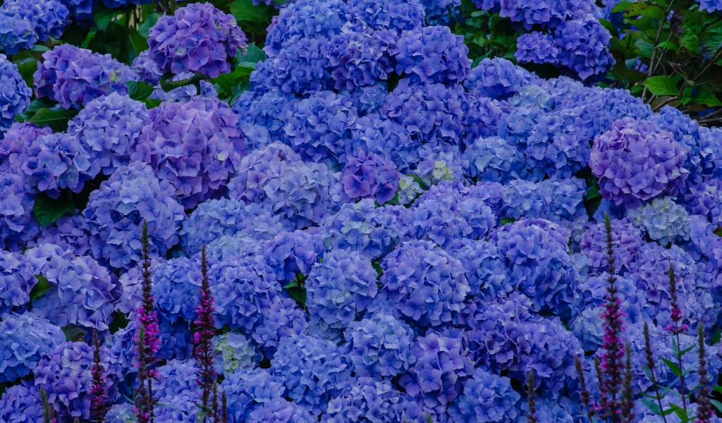 Обои Синие цветы гортензии в оранжерее