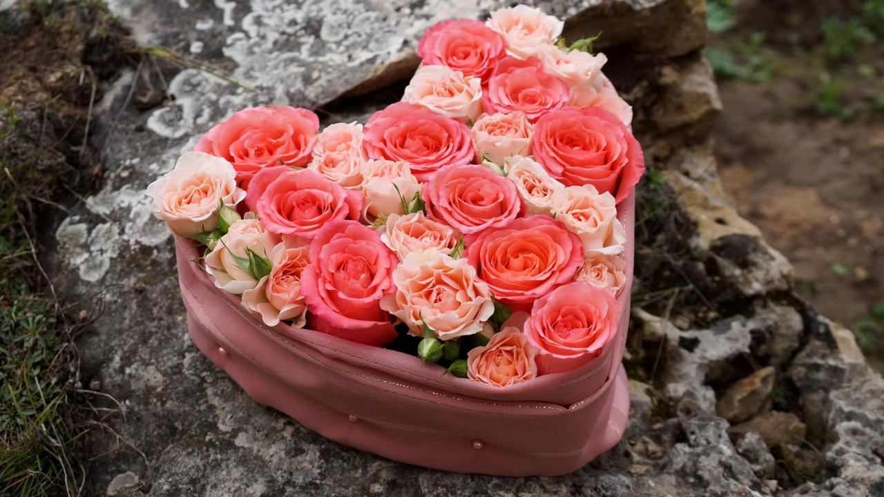 Обои Нежные розы в коробке в форме сердца