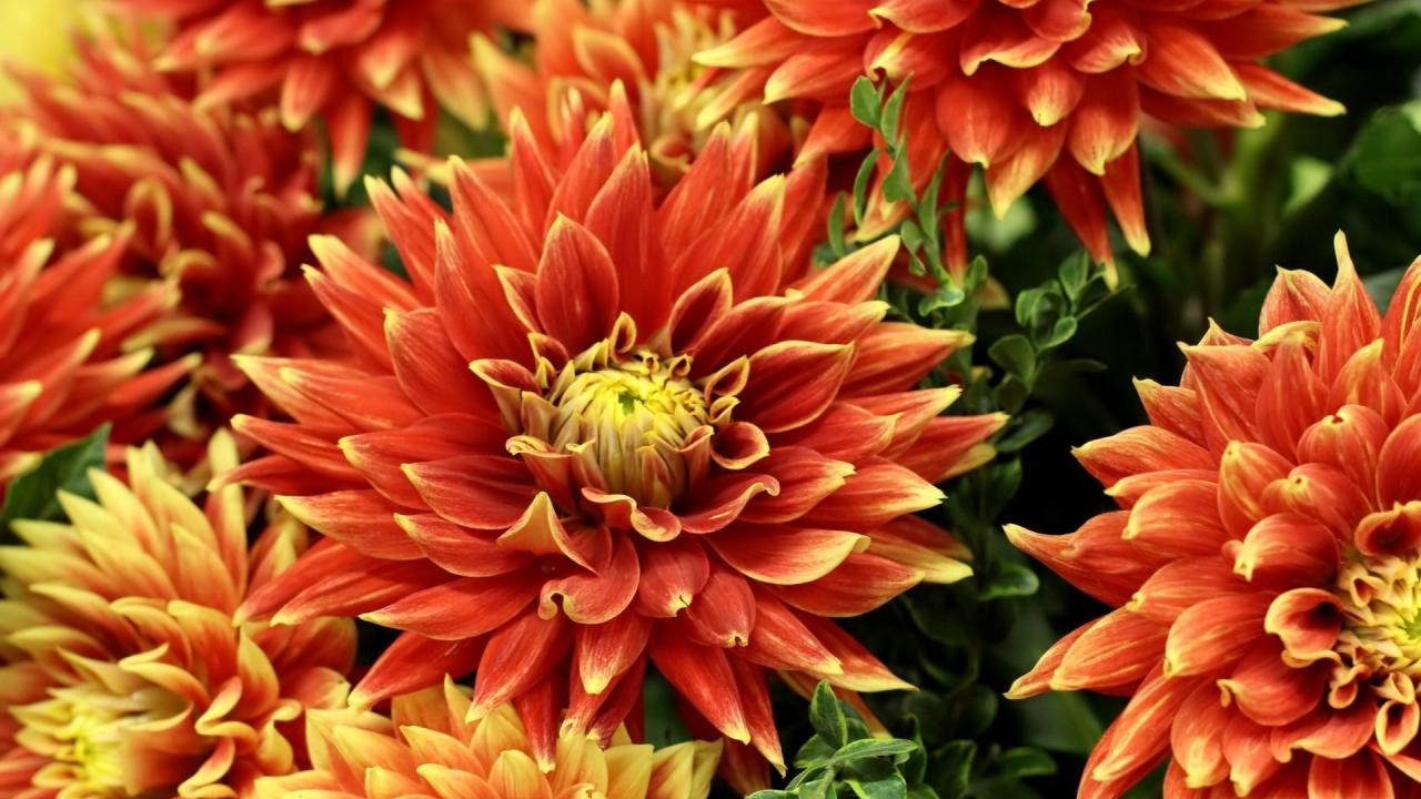 Обои Оранжевые красивые георгины крупным планом