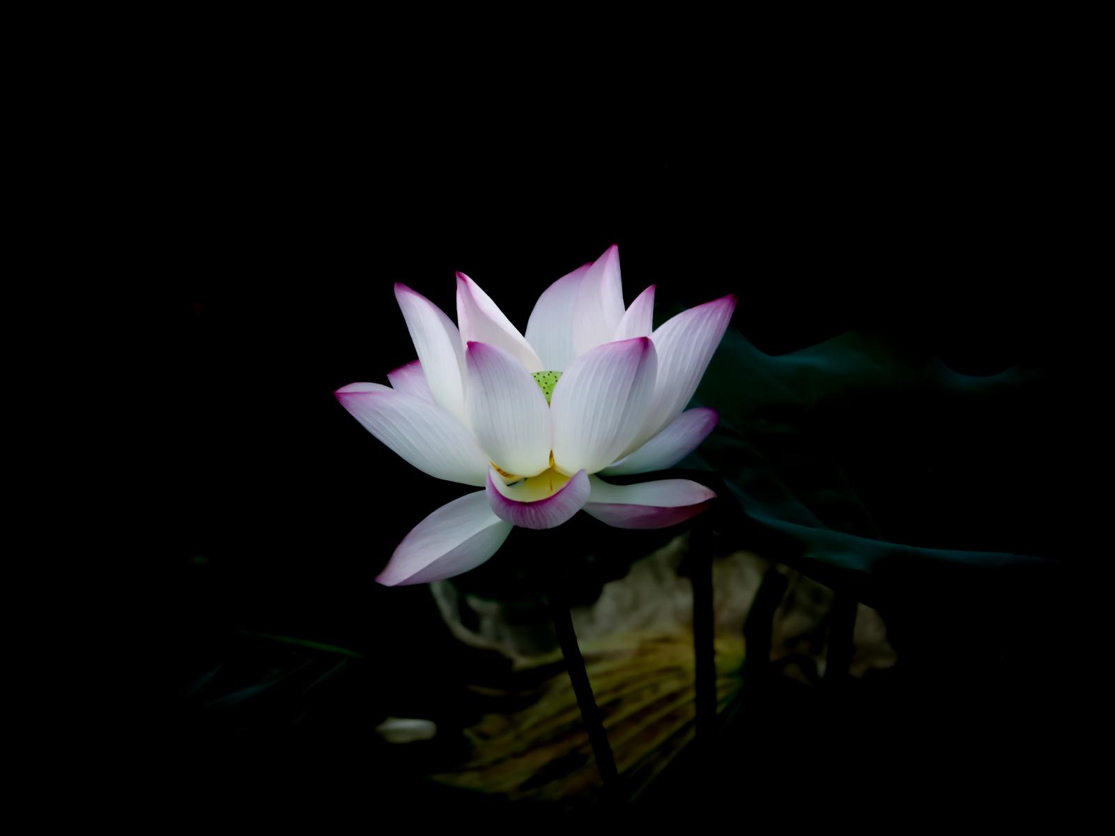 Обои Белый цветок с сиреневыми лепестками на черном фоне