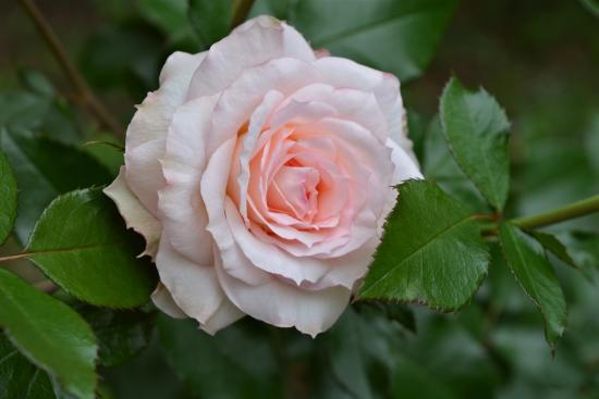 Обои Нежная розовая роза с зелеными листьями крупным планом