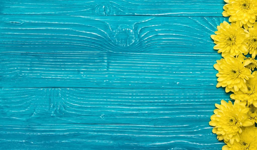 Обои Желтые, белые и розовые хризантемы на белом деревянном столе
