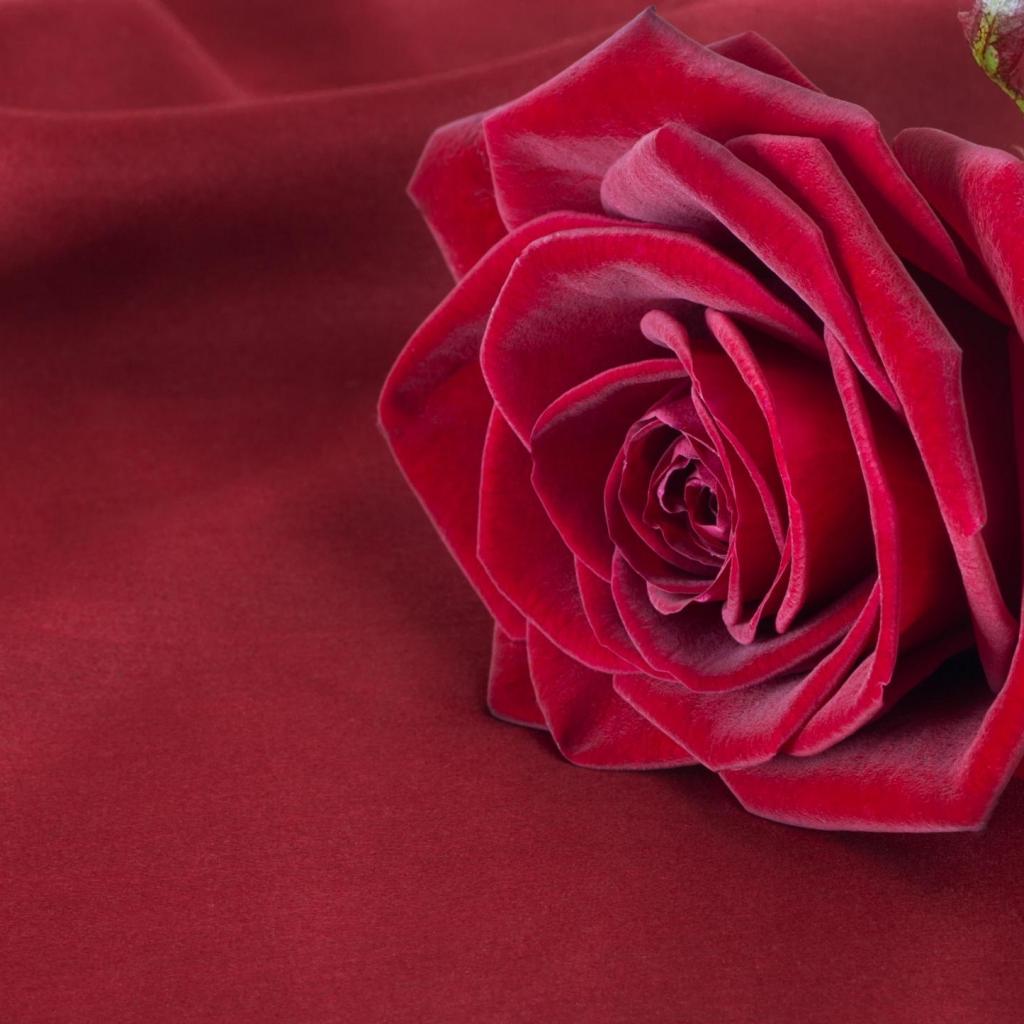 Обои Красивая красная роза лежит на красной ткани