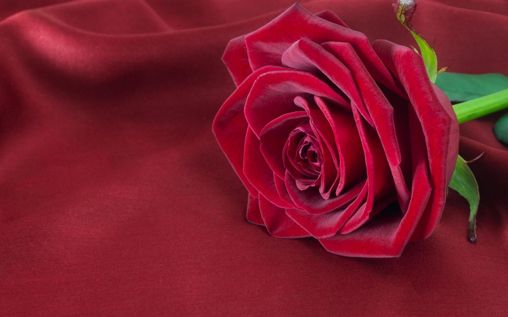 Обои Красивая красная роза лежит на красной ткани