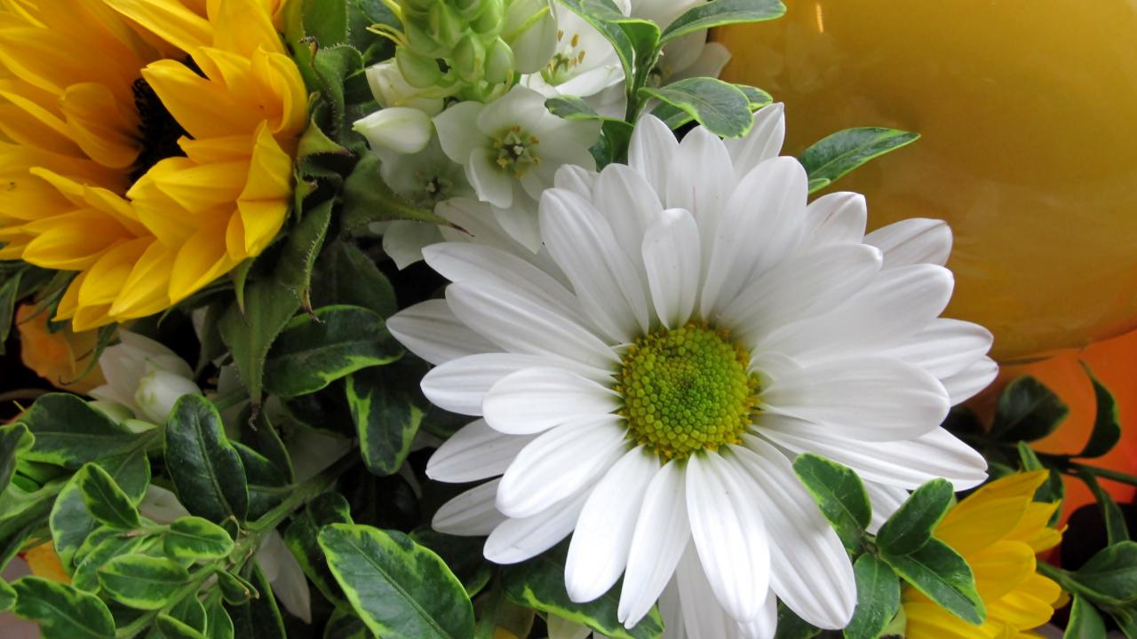 Обои Цветы подсолнуха с белыми цветами хризантемы