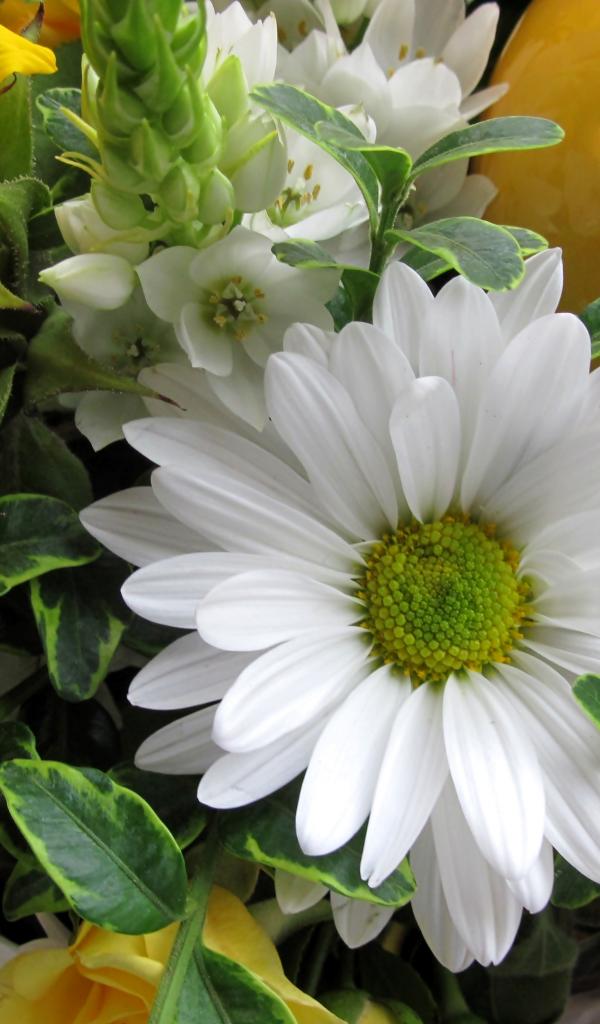 Обои Цветы подсолнуха с белыми цветами хризантемы