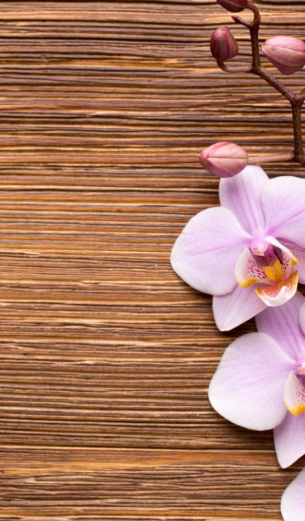 Обои Красивые розовые орхидеи на деревянном фоне
