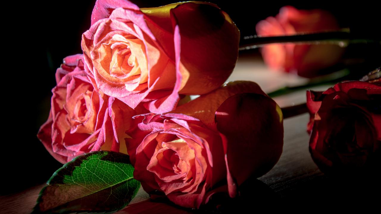Обои Красивые розовые розы на деревянном столе