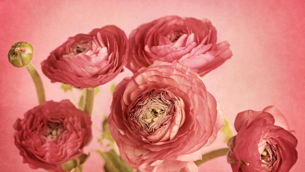 Обои Букет розовых лютиков на розовом фоне