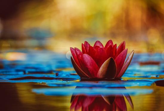 Обои Розовый цветок лотоса отражается в воде