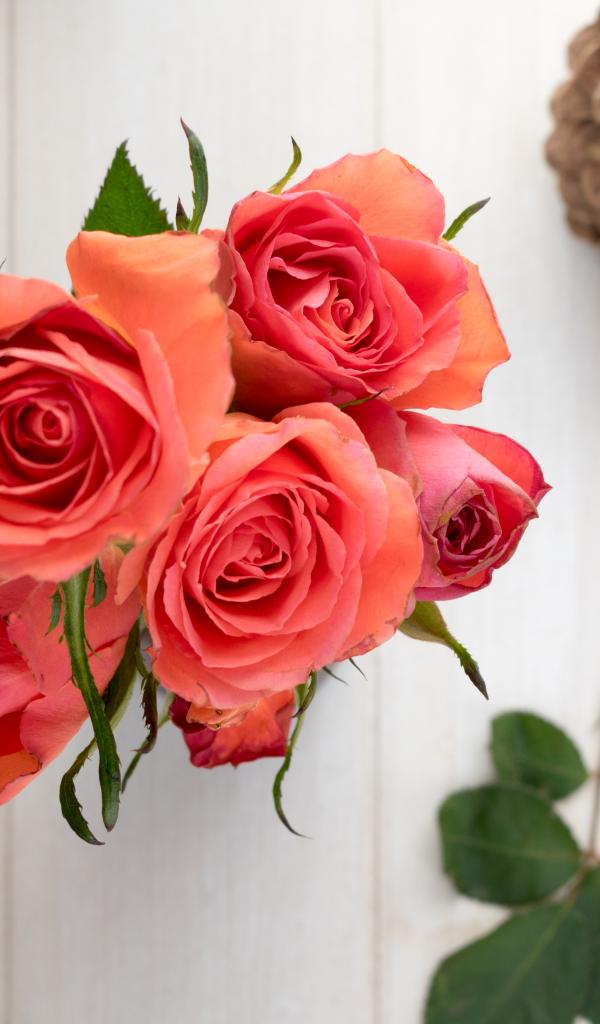 Обои Букет розовых роз на столе с каштанами и шишкой