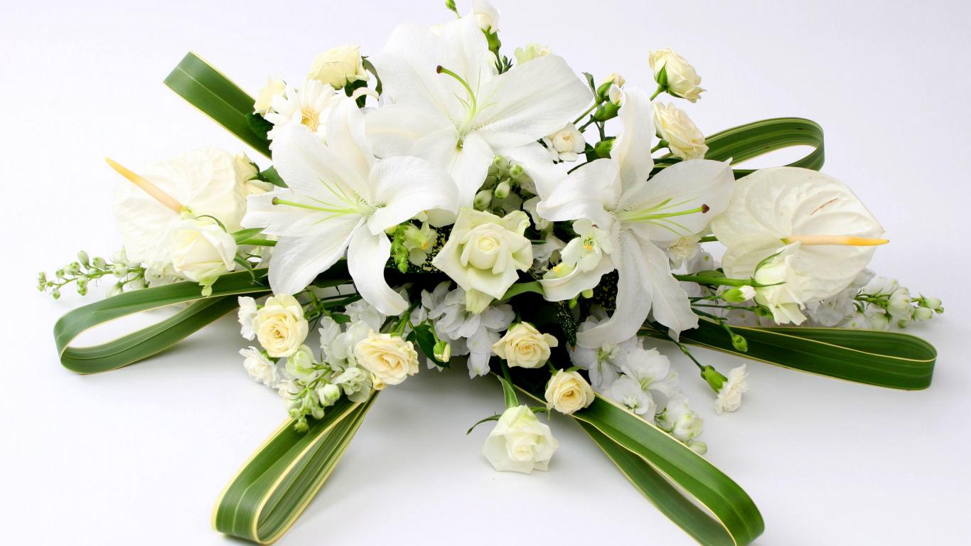Обои Букет с белыми розами, каллами, гвоздиками и лилиями