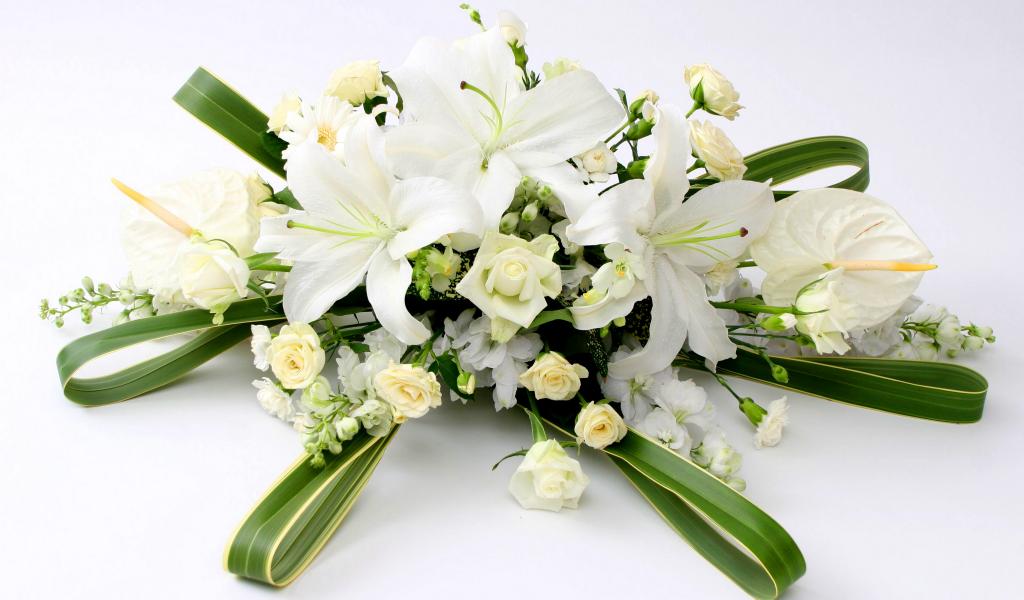 Обои Букет с белыми розами, каллами, гвоздиками и лилиями