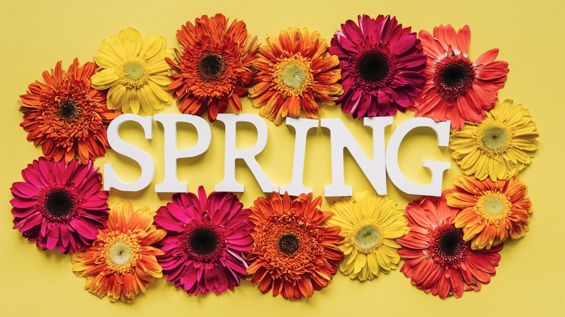 Обои Надпись на английском весна с цветами герберы