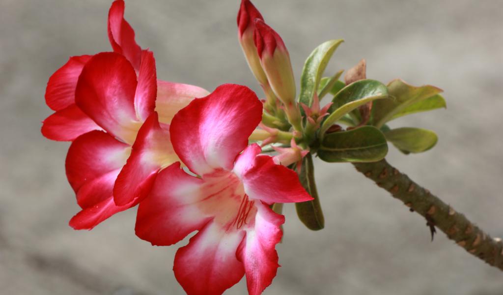 Обои Красные с белым цветы кампсис с бутонами на ветке