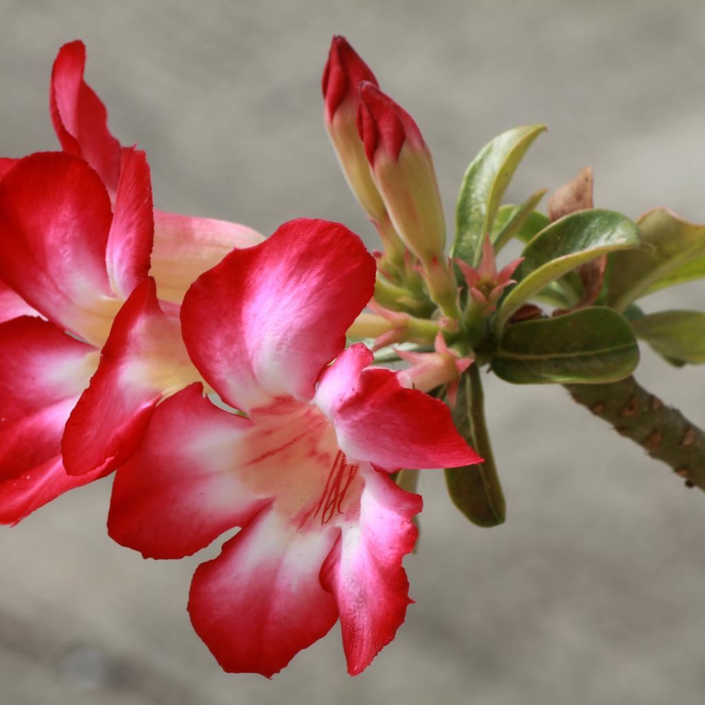 Обои Красные с белым цветы кампсис с бутонами на ветке