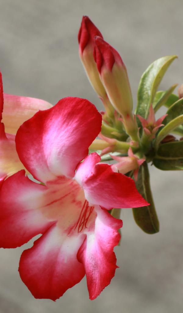 Обои Красные с белым цветы кампсис с бутонами на ветке