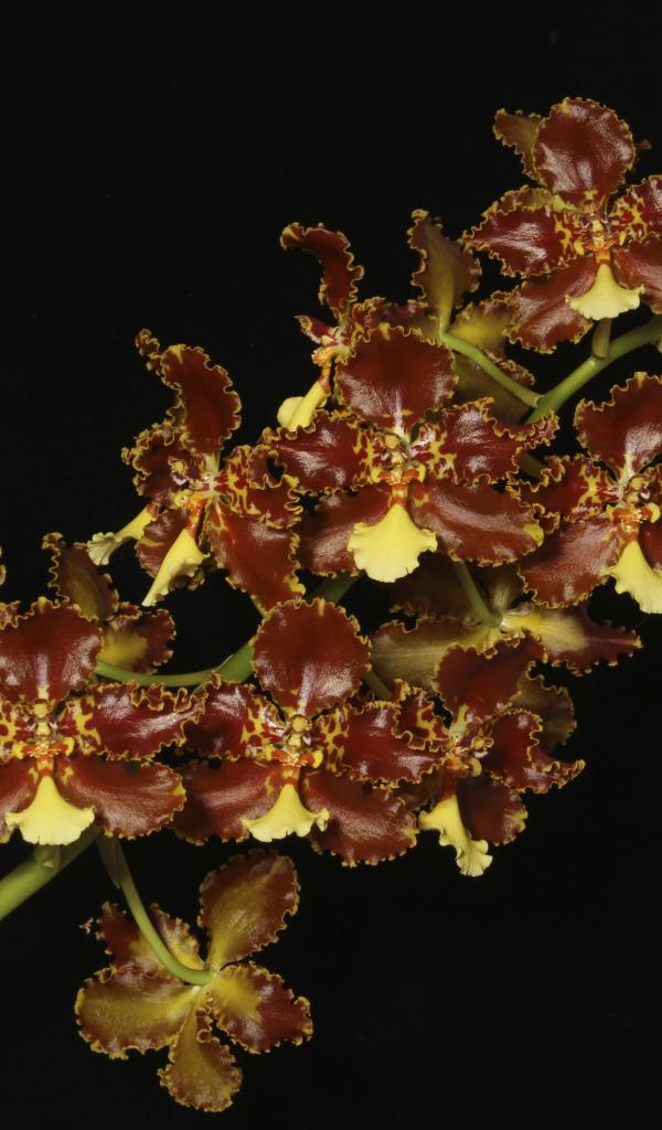 Обои Экзотическая коричневая орхидея на черном фоне