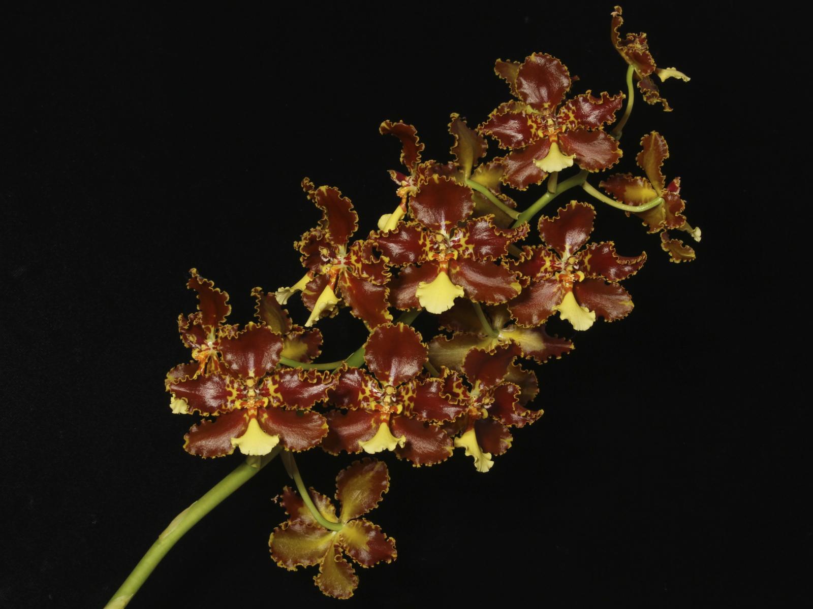 Обои Экзотическая коричневая орхидея на черном фоне