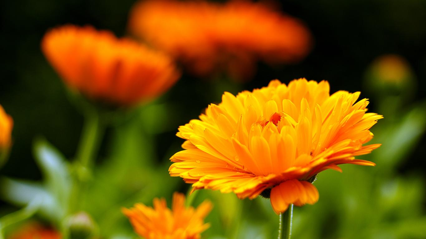 Обои Оранжевый красивый цветок календулы крупным планом