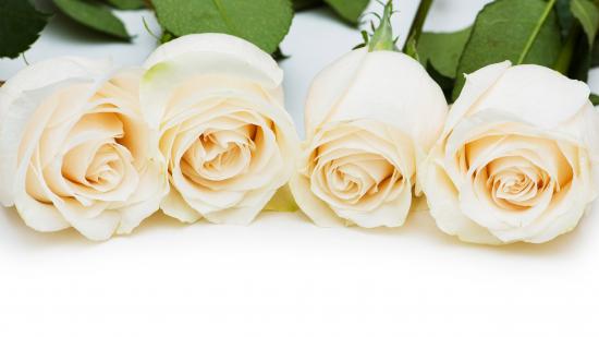 Обои Четыре нежные белые розы на белом фоне