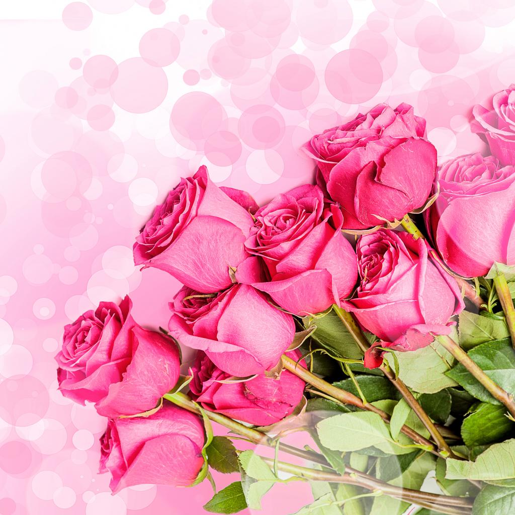Обои Букет розовых роз на фоне с розовыми кругами
