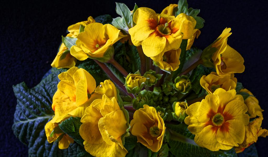 Обои Желтые цветы комнатного цветка примулы крупным планом