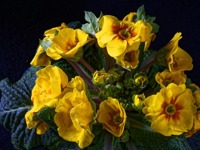Обои Желтые цветы комнатного цветка примулы крупным планом