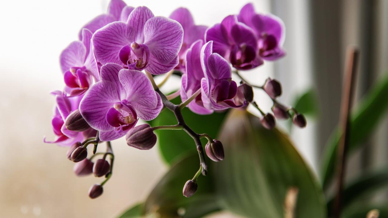 Обои Красивые розовые цветы орхидеи с бутонами крупным планом
