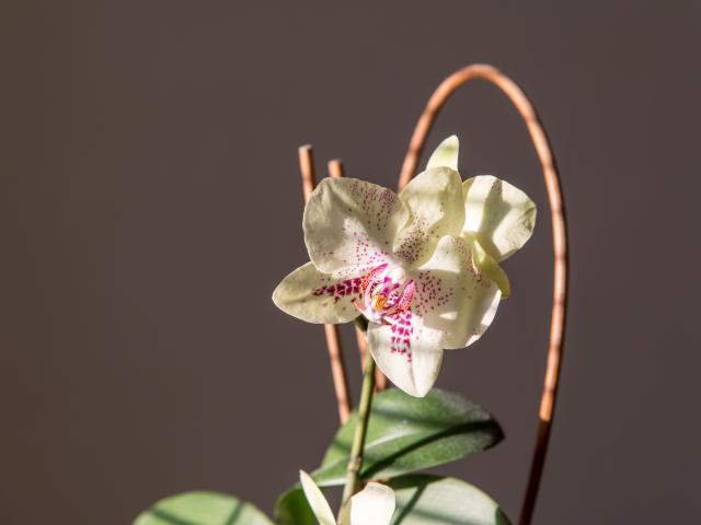 Обои Красивый нежный белый цветок орхидеи на сером фоне