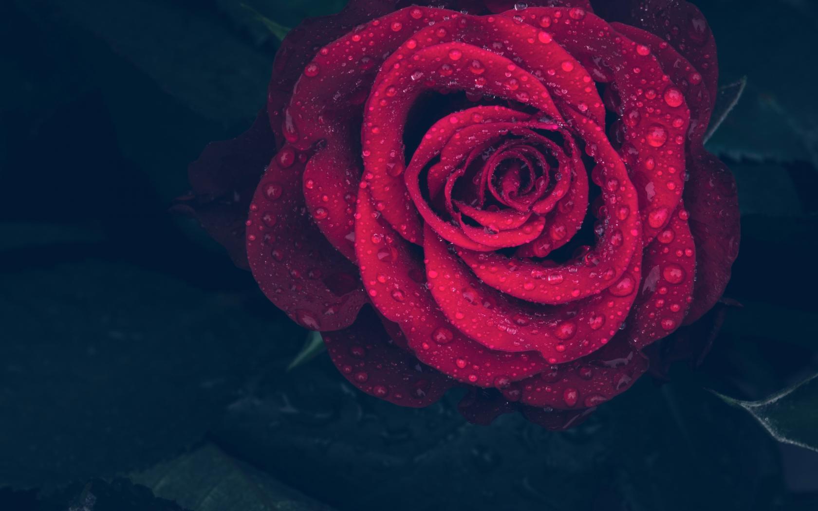 Обои Красная роза в каплях воды на лепестках