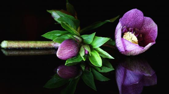Обои Фиолетовый цветок морозник на черном фоне