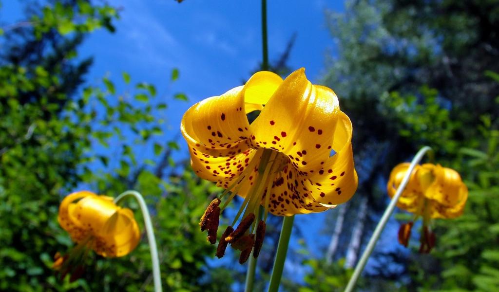 Обои Желтая тигровая лилия в саду