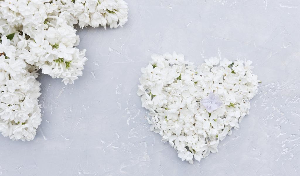Обои Сердце из цветов белой сирени на сером фоне
