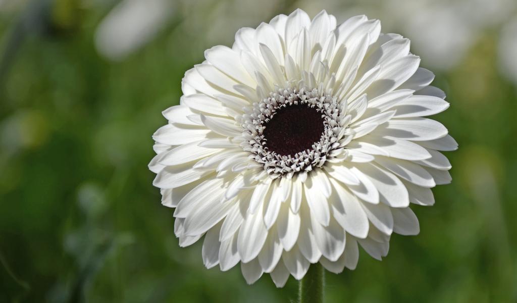 Обои Красивый белый цветок герберы с черной серединой