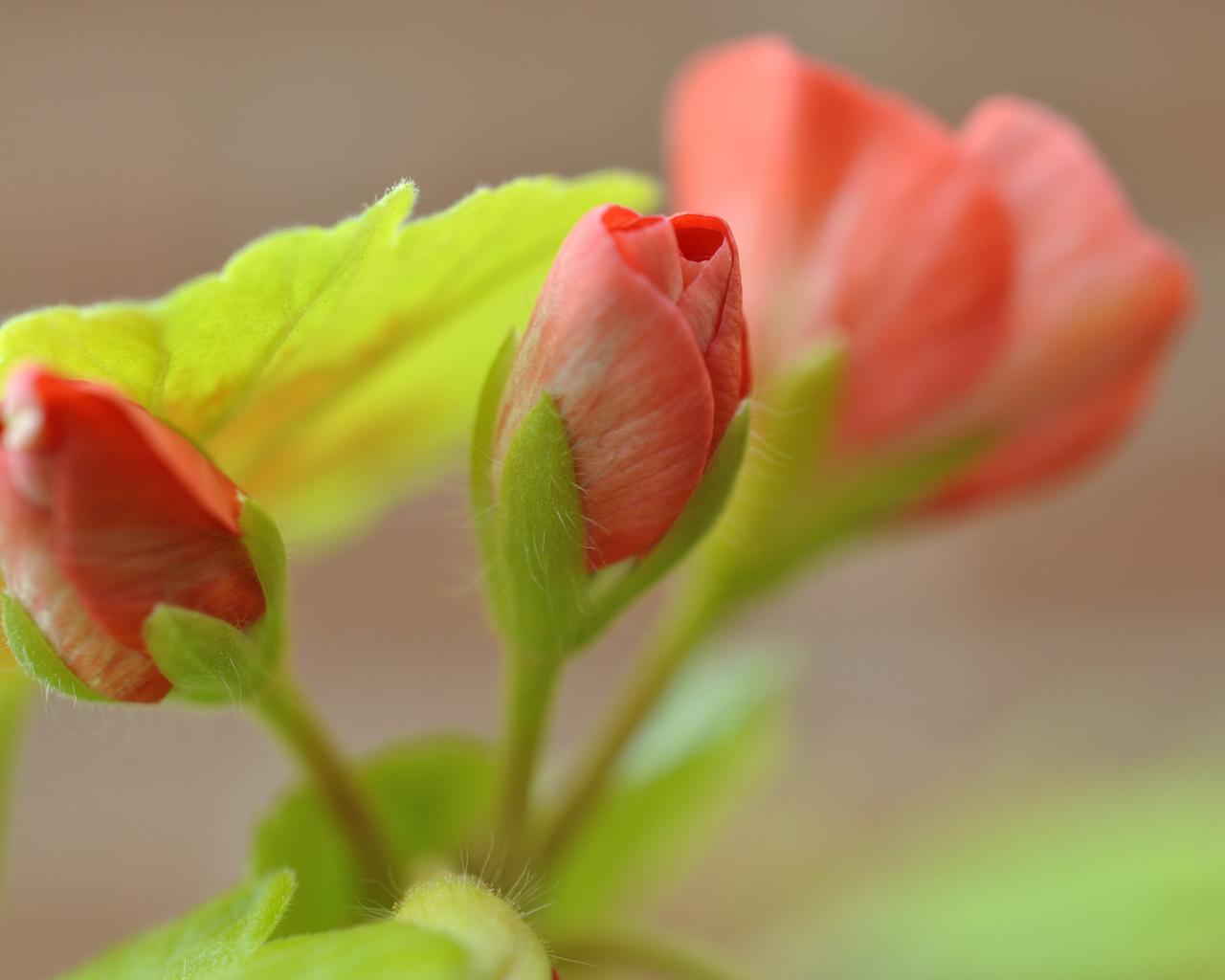 Обои Красный цветок герани распускается крупным планом