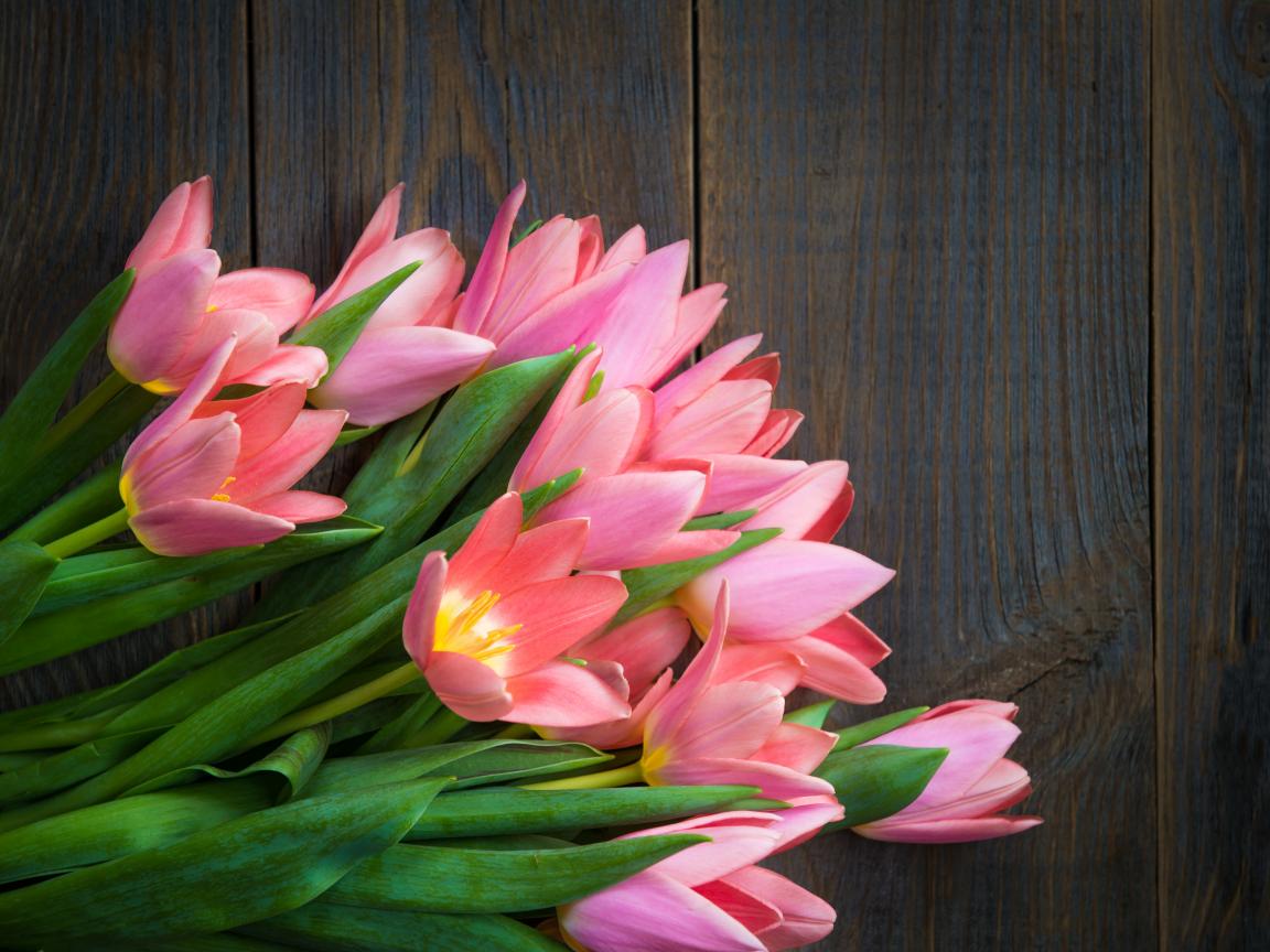 Обои Красивый букет розовых тюльпанов на деревянном столе