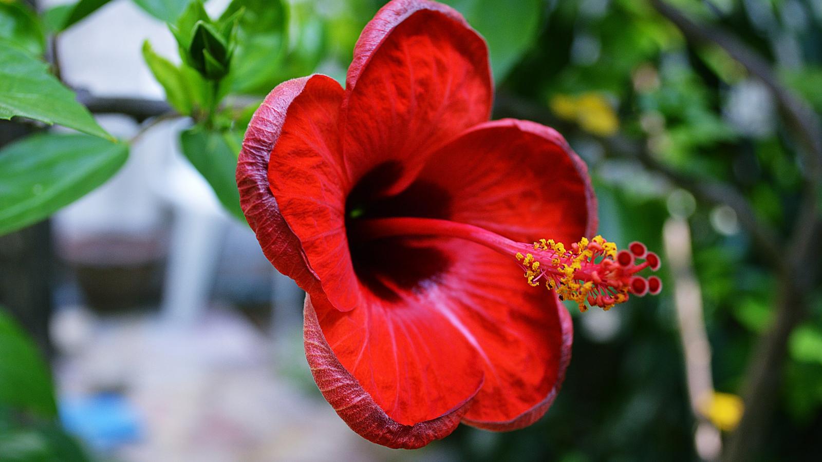 Обои Красивый красный цветок гибискуса крупным планом