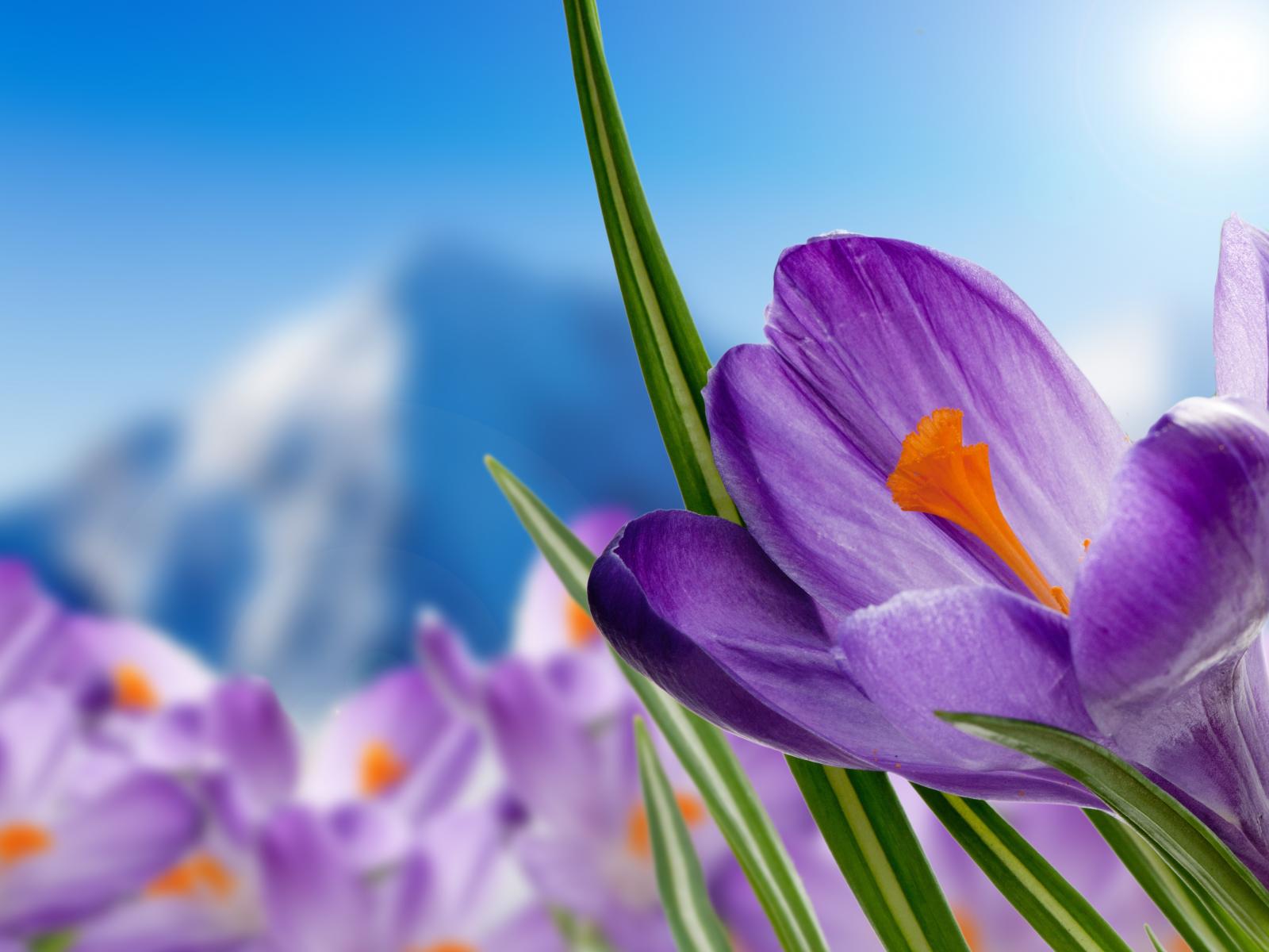 Обои Нежный сиреневый альпийский крокус крупным планом