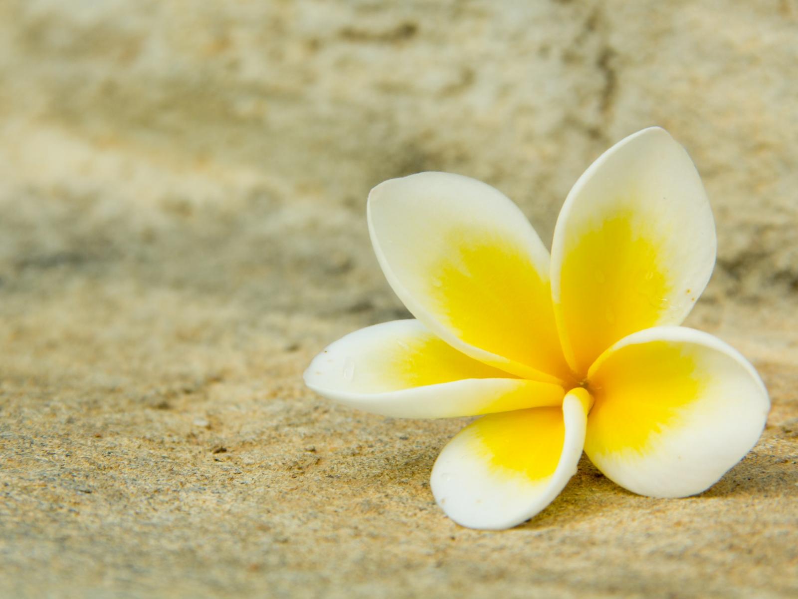 Обои Нежный цветок плюмерии лежит на песке