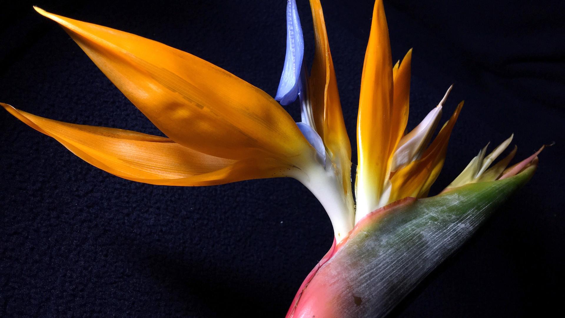 Обои Экзотический цветок стрелиция на черном фоне