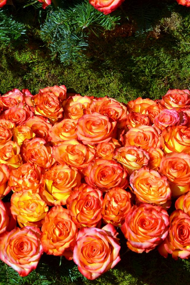Обои Много оранжевых тюльпанов на фоне голубого неба