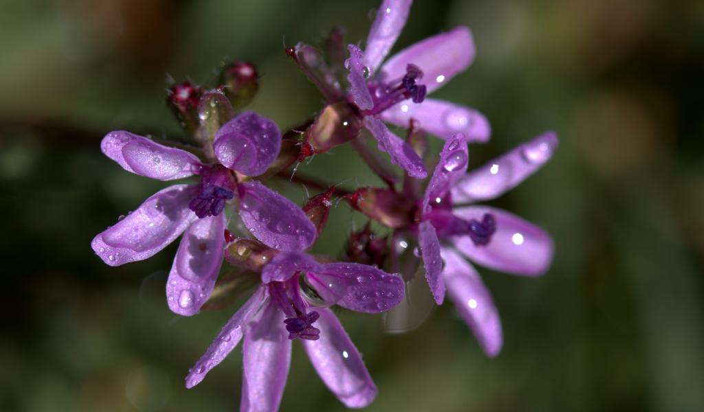 Обои Красивый полевой розовый цветок в каплях росы