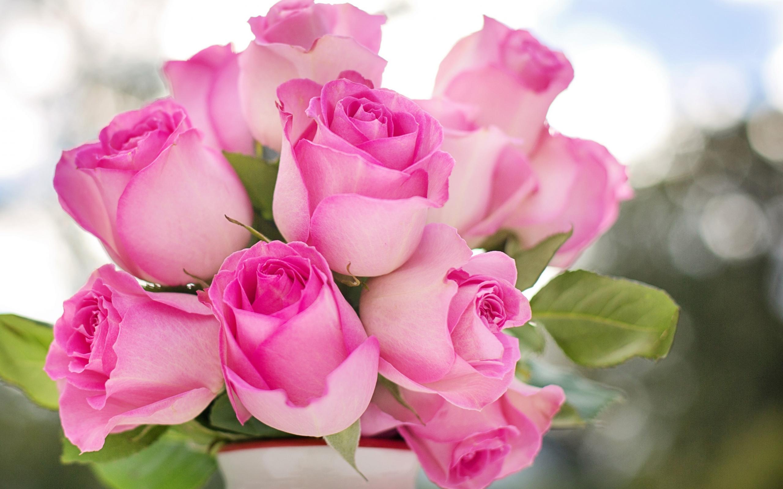 Обои Букет нежных розовых роз в вазе