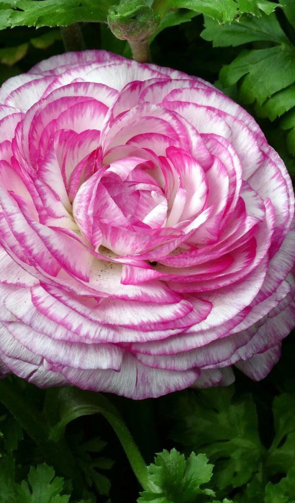 Обои Красивый розовый лютик в зеленых листьях