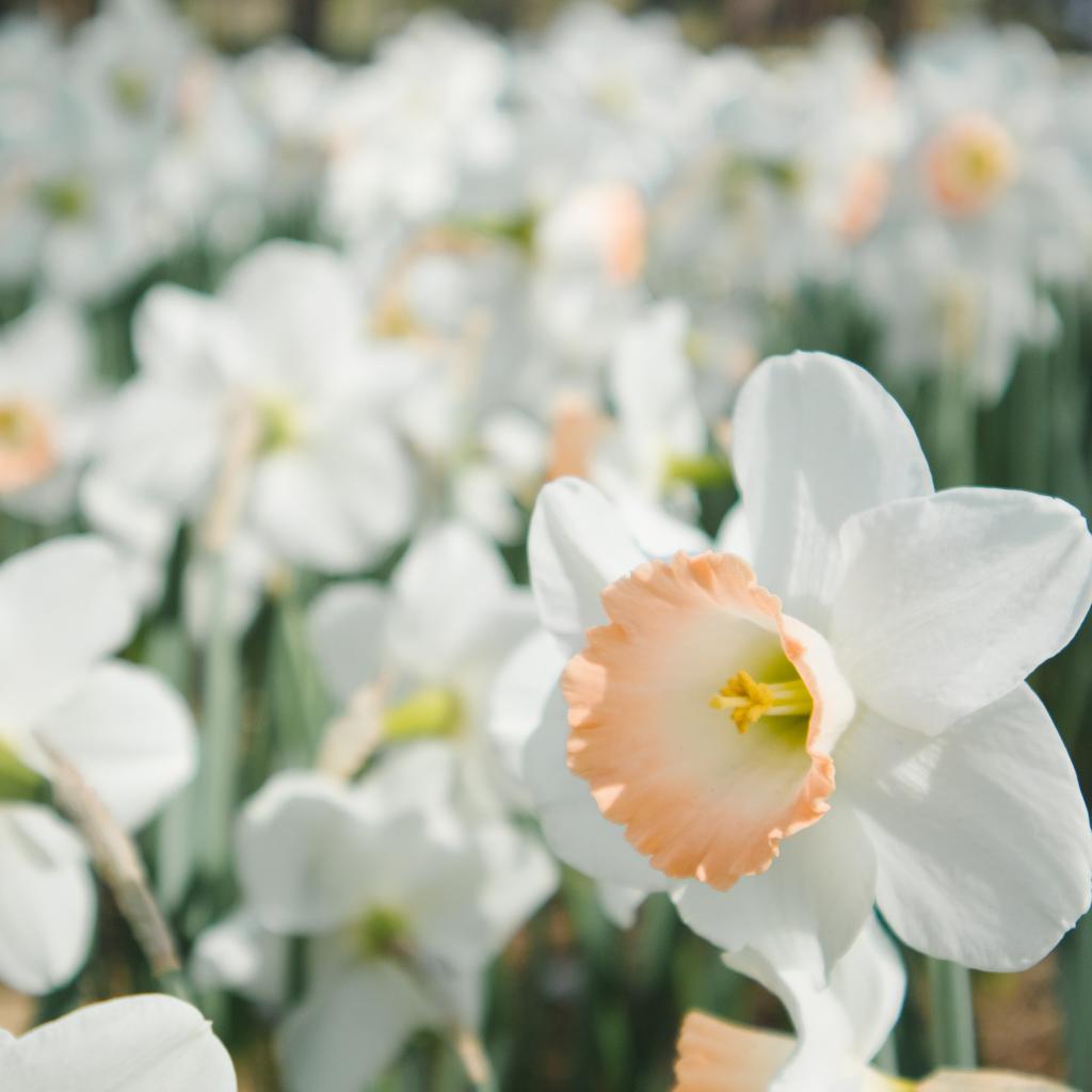 Обои Много ярких белых весенних нарциссов на клумбе