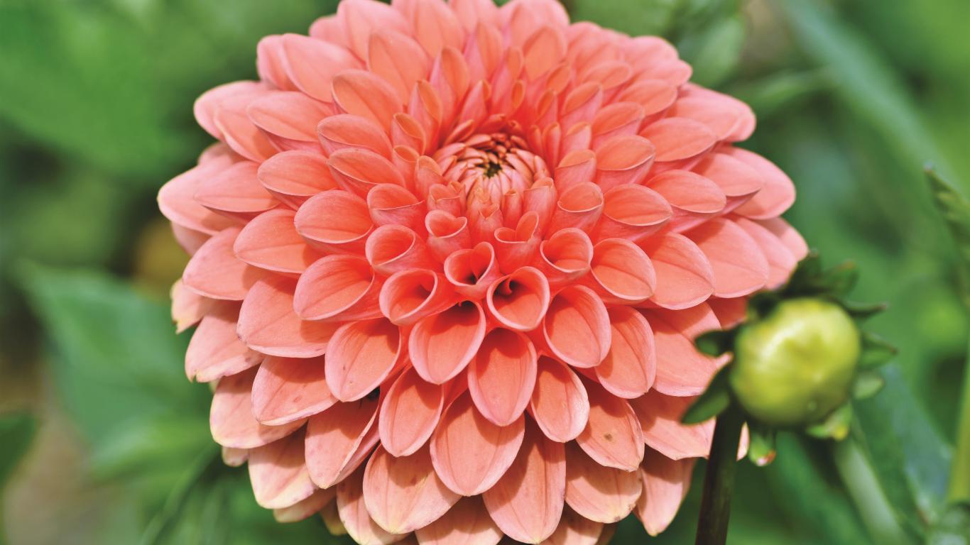 Обои Розовая георгина с бутоном крупным планом
